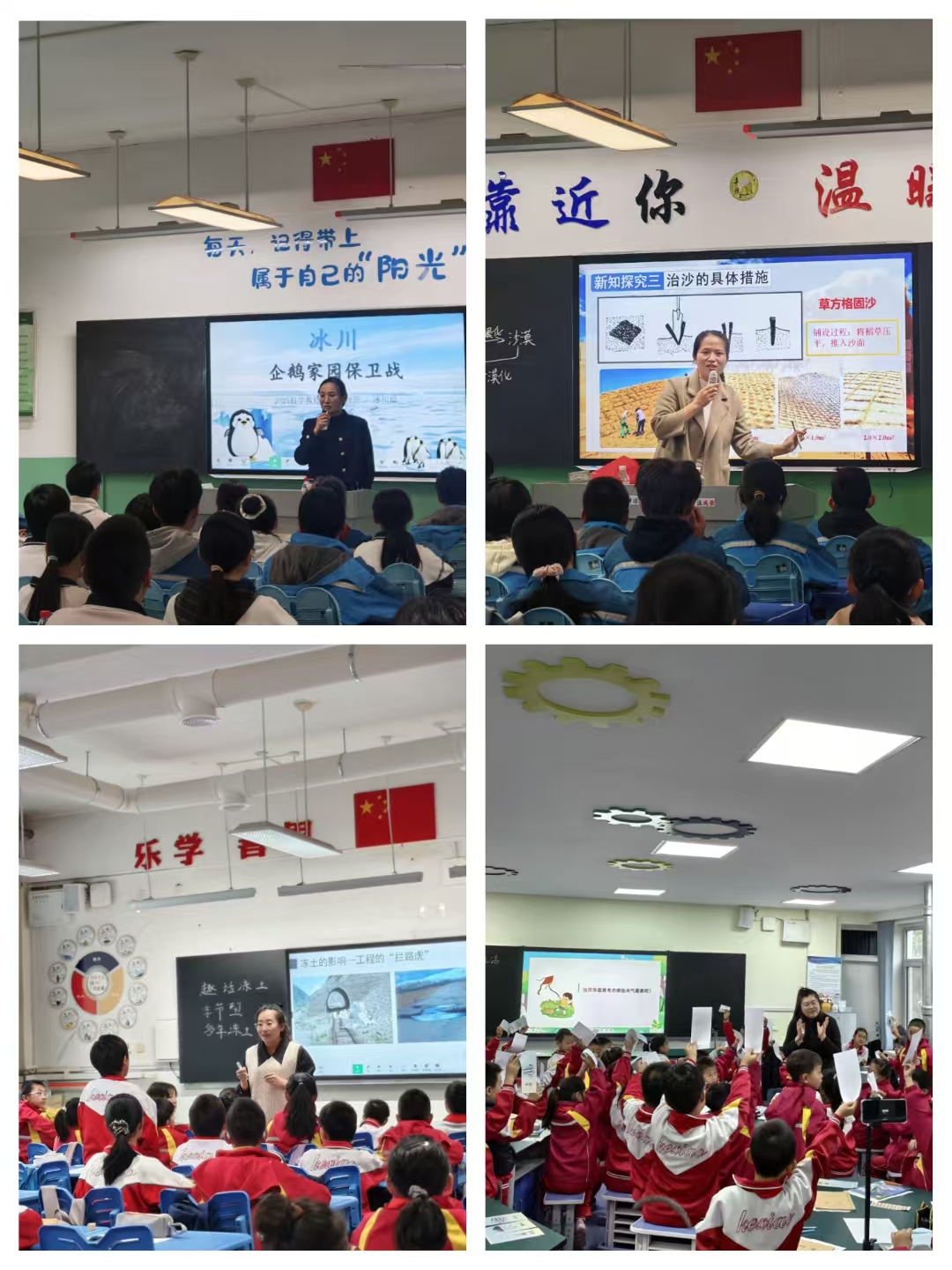 實踐創(chuàng)作環(huán)節(jié)則強調(diào)了直觀易懂和學科優(yōu)勢。教師們在雙導師的指導下,圍繞冰川、凍土、沙漠和大氣四個方向進行了教學案例的創(chuàng)作,并將創(chuàng)作成果帶入中小學課堂進行科學公開課展示,獲得一致好評。