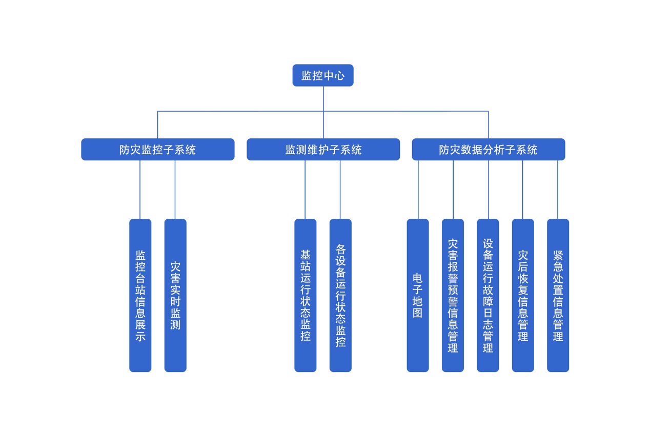 監(jiān)控中心能夠?qū)Ψ罏?zāi)監(jiān)測(cè)區(qū)域內(nèi)進(jìn)行全方位的災(zāi)害監(jiān)測(cè)及預(yù)警,對(duì)各個(gè)監(jiān)測(cè)設(shè)備進(jìn)行全方位、多層次的監(jiān)控和管理。對(duì)監(jiān)控設(shè)備運(yùn)行狀態(tài)實(shí)時(shí)監(jiān)測(cè),同時(shí)對(duì)接收到的報(bào)警、預(yù)警信息進(jìn)行展示,實(shí)現(xiàn)電子地圖自動(dòng)定位、多點(diǎn)災(zāi)害預(yù)測(cè)定位,自動(dòng)化災(zāi)害緊急處置、設(shè)備故障日志查詢、災(zāi)害報(bào)警預(yù)警數(shù)據(jù)查詢導(dǎo)出、實(shí)時(shí)監(jiān)測(cè)等功能。