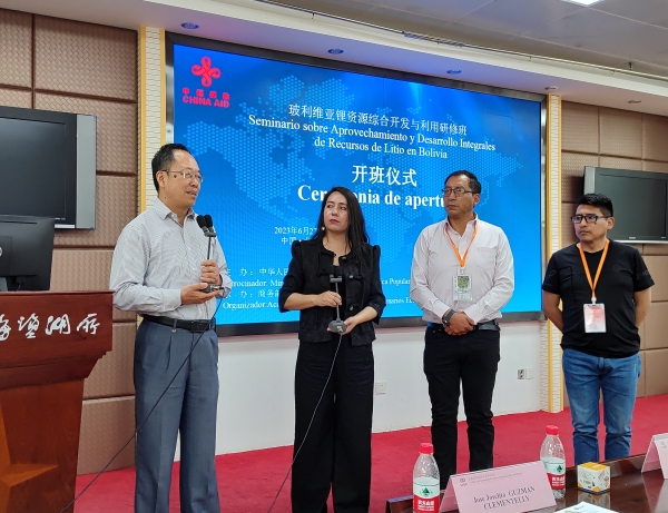 為深化與玻利維亞在鋰資源領(lǐng)域的國際合作與交流,6月29日至7月3日,由商務(wù)部主辦、商務(wù)部國際商務(wù)官員研修學(xué)院承辦的援外培訓(xùn)項目“玻利維亞鋰資源綜合開發(fā)與利用研修班”在青海鹽湖所舉辦。開展了專題授課、現(xiàn)場參觀和調(diào)研、專題研討等多種形式的培訓(xùn)和交流。玻利維亞油氣和能源部、奧魯羅省政府官員及其國家鋰礦公司技術(shù)負(fù)責(zé)人等20余位學(xué)員參加。