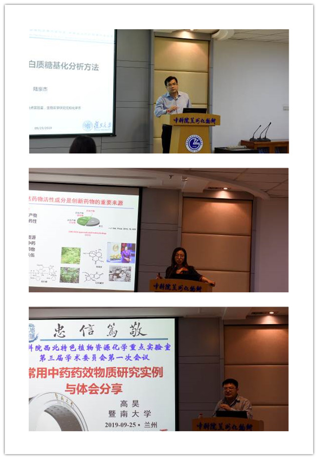 實驗室主任邸多隆研究員作了工作報告,匯報了實驗室2018年的科研工作與成果、團(tuán)隊建設(shè)、學(xué)術(shù)交流、開放交流與運(yùn)行管理、管理體制與運(yùn)行機(jī)制、實驗室下一步發(fā)展規(guī)劃以及實驗室發(fā)展亟待解決的問題和改進(jìn)建議。邱洪燈、楊軍麗、梁曉靜、哈偉、金輝、陳佳等六位實驗室青年科研人員分別就藥物與標(biāo)志物精準(zhǔn)分離分析、特色藥用植物資源的化學(xué)成分和活性、氧化石墨烯基色譜分析材料、活性天然產(chǎn)物的控釋系統(tǒng)、瑞香狼毒化感物質(zhì)的活性先導(dǎo)化合物、多功能熒光探針設(shè)計等工作作了專題報告,同與會專家交流了實驗室最新科研動態(tài)和發(fā)展思路。