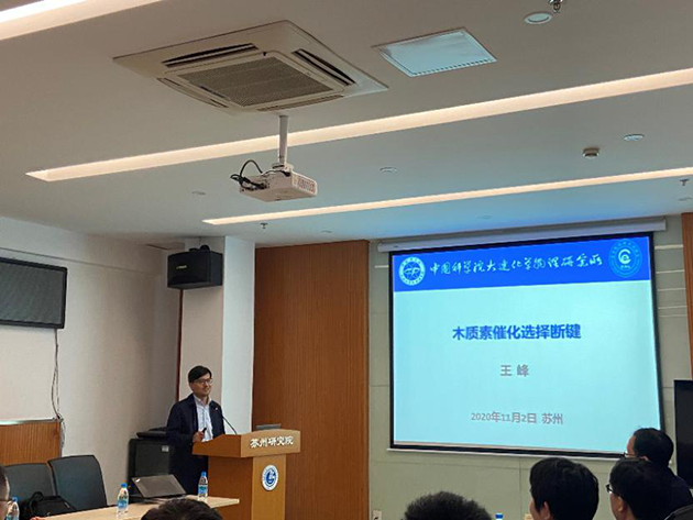 11月2日,應(yīng)羰基合成與選擇氧化國家重點實驗室邀請,中國科學(xué)院大連化學(xué)物理研究所王峰研究員到中國科學(xué)院蘭州化學(xué)物理研究所蘇州研究院進(jìn)行學(xué)術(shù)交流,并作了題為“木質(zhì)素催化選擇斷鍵”的學(xué)術(shù)報告。