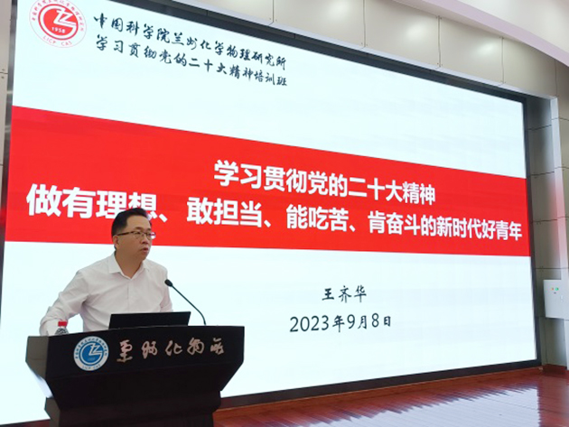 蘭州化物所黨委書記王齊華作了題為“學(xué)習(xí)貫徹黨的二十大精神 做有理想敢擔(dān)當(dāng)能吃苦肯奮斗的新時代好青年”的專題黨課,并對全體研究生同學(xué)提出希望和要求。希望同學(xué)們以習(xí)近平新時代中國特色社會主義思想為指導(dǎo),認(rèn)真學(xué)習(xí)領(lǐng)會黨的二十大精神、習(xí)近平總書記關(guān)于科技創(chuàng)新的重要論述和指示批示精神。面向世界科技前沿、面向國家重大需求、面向國民經(jīng)濟(jì)主戰(zhàn)場、面向人民生命健康,刻苦鉆研,勇于創(chuàng)新,大力傳承弘揚(yáng)科學(xué)家精神,培養(yǎng)高尚的品格、積淀豐厚的學(xué)養(yǎng)、保持良好的心理狀態(tài),努力成長為對國家、對民族有用的創(chuàng)新人才,把個人的理想追求融入黨和國家事業(yè)之中,為早日實現(xiàn)高水平科技自立自強(qiáng)貢獻(xiàn)青春力量和智慧。