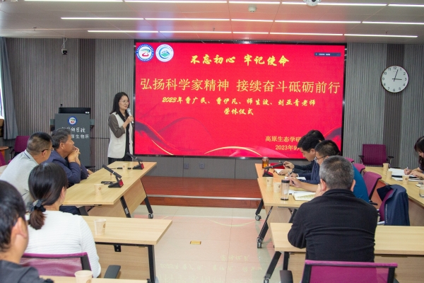 光陰荏苒,歲月如歌。從風(fēng)華正茂到兩鬢飛霜,三四十載輝煌歲月,他們用奉獻和汗水使高原生物研究事業(yè)蓬勃發(fā)展。如今,他們即將離開自己熱愛的工作崗位……。9月12日下午,一場以“弘揚科學(xué)家精神,接續(xù)奮斗砥礪前行”為主題的退休職工榮休儀式在中國科學(xué)院西北高原生物研究所舉行,共同祝福四位榮休職工曹廣民、曹伊凡、師生波和劉亞青步入人生新階段。黨委書記、副所長張景光,副所長楊其恩,管理部門負責(zé)人,及生態(tài)中心在職職工和研究生50余人參加會議。會議由人事教育處副處長楊紅霞和高原生態(tài)學(xué)研究中心主任徐世曉主持。