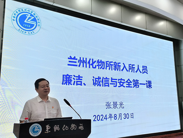 所長周峰作了題為“蘭州化物所所情及科技創(chuàng)新工作”的報(bào)告,介紹了研究所歷史沿革與主要貢獻(xiàn)、科研平臺(tái)與人才隊(duì)伍、承擔(dān)任務(wù)與成果產(chǎn)出、科技合作與成果轉(zhuǎn)化、“十四五”規(guī)劃與目標(biāo)等情況。紀(jì)委書記張景光作了題為“廉潔、誠信與安全第一課”的報(bào)告,組織學(xué)習(xí)了黨的二十屆三中全會(huì)精神和習(xí)近平總書記關(guān)于全面從嚴(yán)治黨、自我革命、科技創(chuàng)新的重要論述,傳達(dá)了中國科學(xué)院黨組2024年夏季擴(kuò)大會(huì)議和院科研誠信會(huì)議的有關(guān)工作部署,通報(bào)了違紀(jì)違規(guī)和科研失信行為的典型案例。